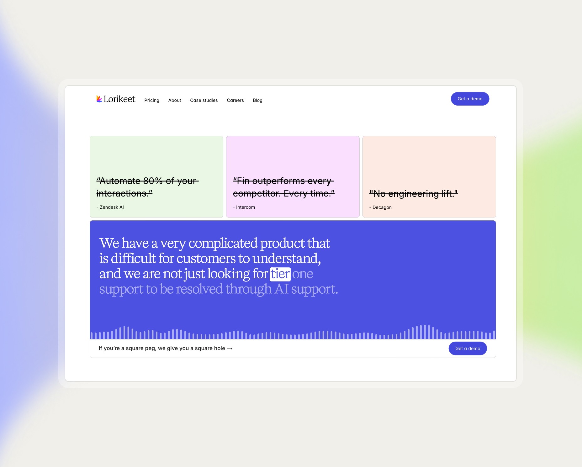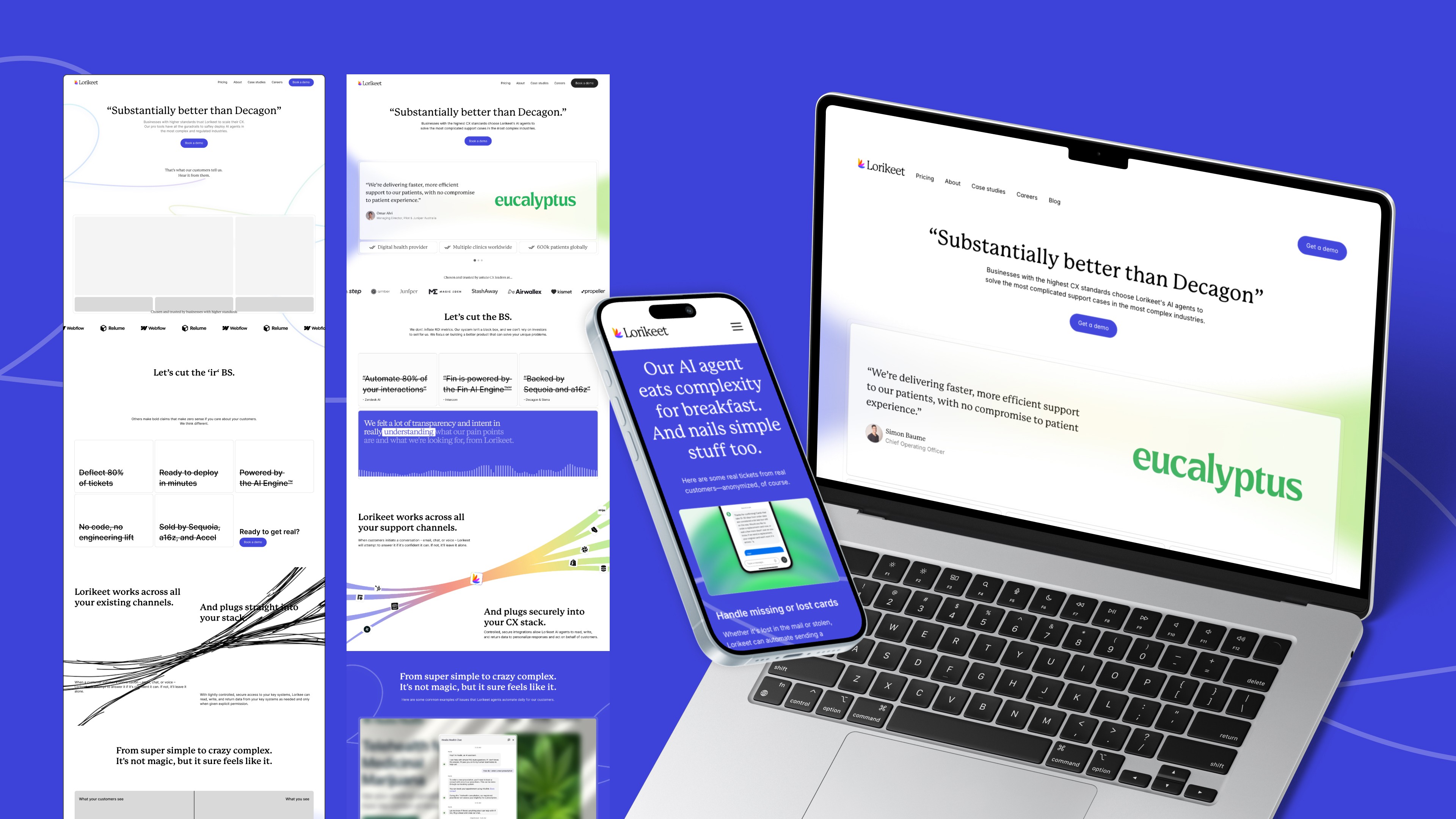Lorikeet CX is an AI concierge for CX teams throughout the world. In an ever-evolving industry, Lorikeet was behind in its brand and positioning. We came in and repositioned, redesigned, and developed their brand and website to truly showcase Lorikeet's capabilities, its customers, and show proof through client testimonials.